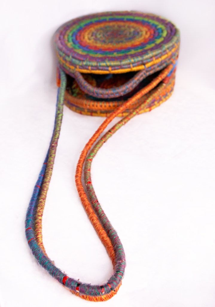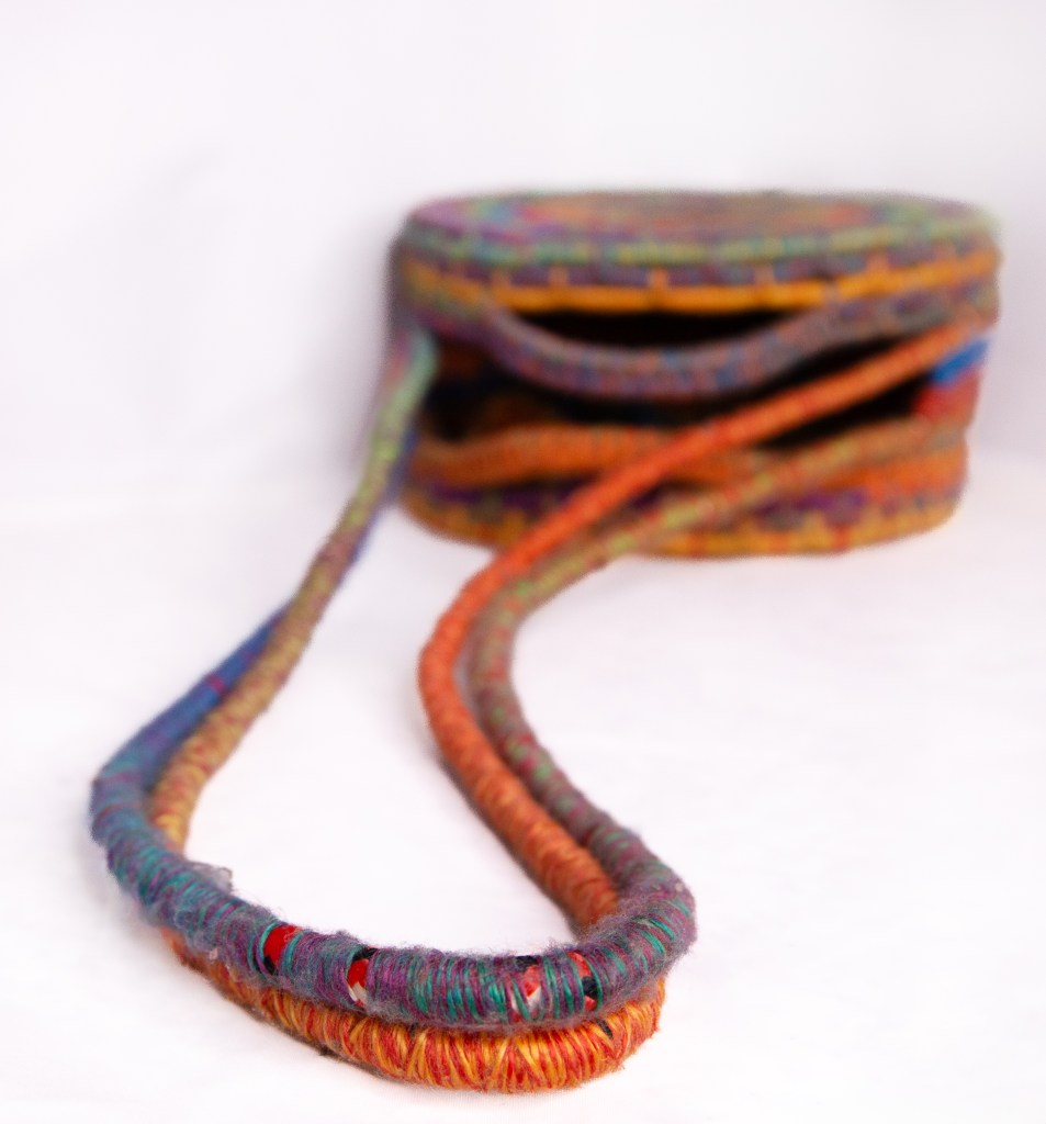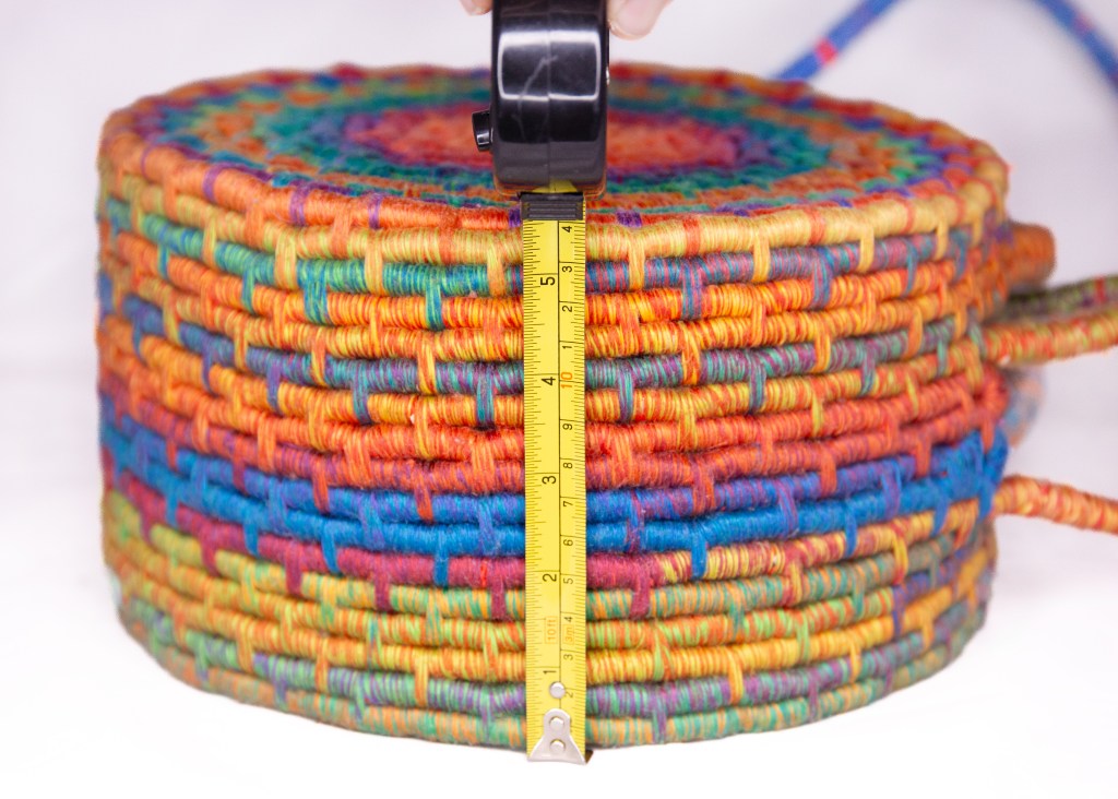So I started with a coil spiral as always, to make a circular purse. I contemplated a beach bag style but thought this one would be more unique and I could learn more! This was my first experimentation with really sculpting the rope! I realized this medium is a lot like 3D printing, so I could make sculptures with a single piece of rope! It just takes way way way longer than a 3D printer! haha