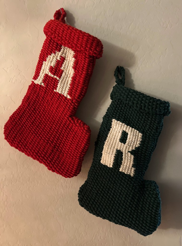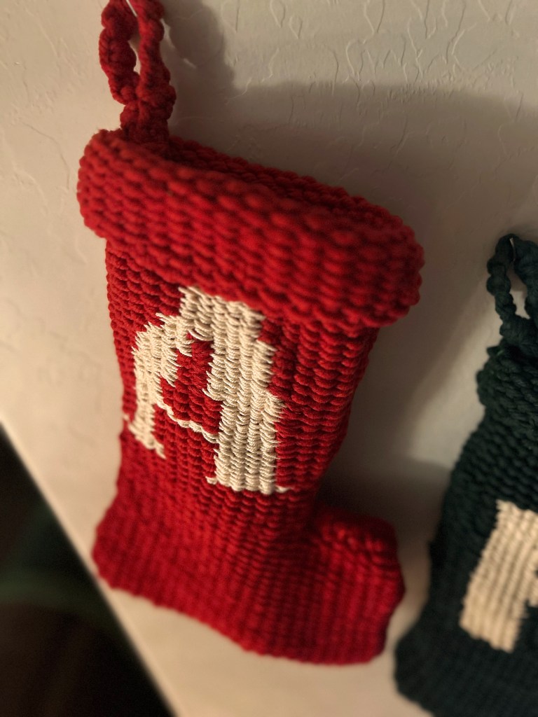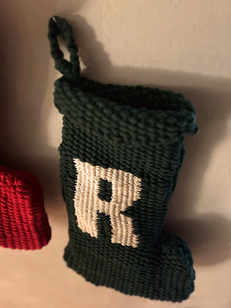 After I tried my hand at weaving a mitten on a cardboard loom earlier this year, I knew I eventually wanted to make some Christmas stockings for my husband and I! Once I finished this year’s final rope sculpture, I decided to prioritize making our stockings.
